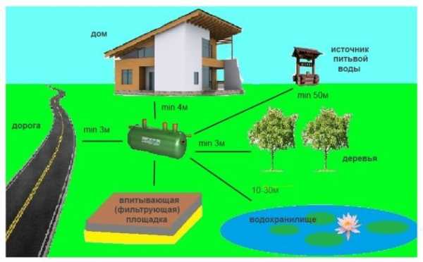 - От источников питьевой воды очистное сооружение должно находиться на расстоянии не ближе 30 м.
