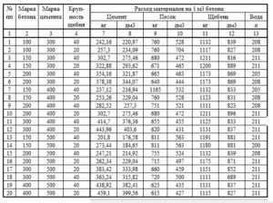 Предлагаем вам также подробную таблицу пропорций, где указан расход материала на 1м3: