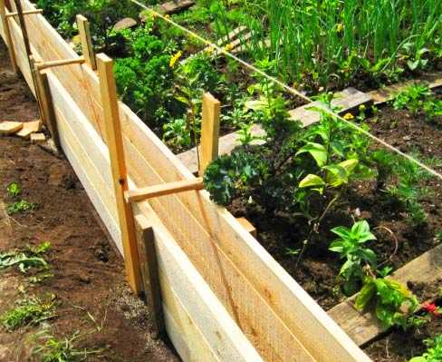 Самым доступным материалом, чтобы оформить бордюр являются доски, фанерные листы.