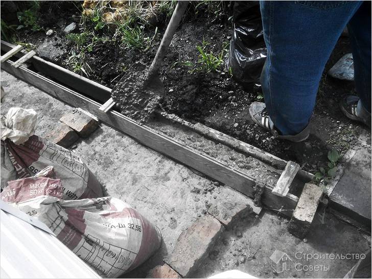 Техника изготовления бордюра при помощи формы показана на видео: