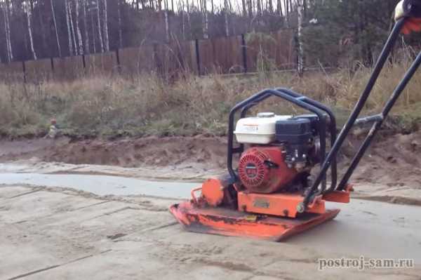 3. Формирование песчаной подушки, заключающееся в засыпании площадки смесью щебня и песка, утрамбовывании вручную или с помощью виброплиты. Песок следует трамбовать слоями в 10 см.