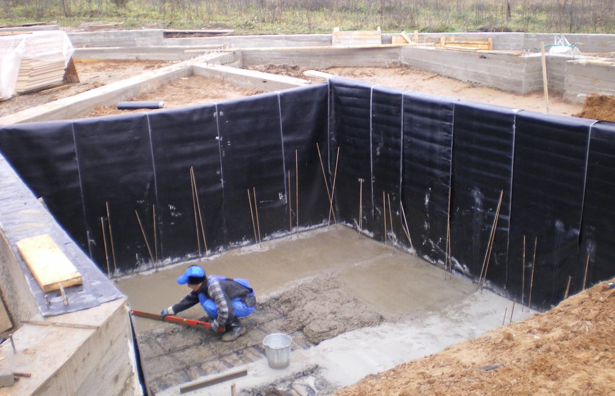 Безнапорная гидроизоляция подвала заключается в защите от воды, накопившейся вследствие атмосферных осадков или паводков. Безусловно, если уже выполнена противонапорная гидроизоляция, то в безнапорной нет никакого смысла. А вот если уровень грунтовых вод на участке довольно низкий и вероятности его сезонного поднятия нет, то можно обойтись только мерами безнапорной гидроизоляции, например, промазать пол и стены фундамента битумной мастикой.