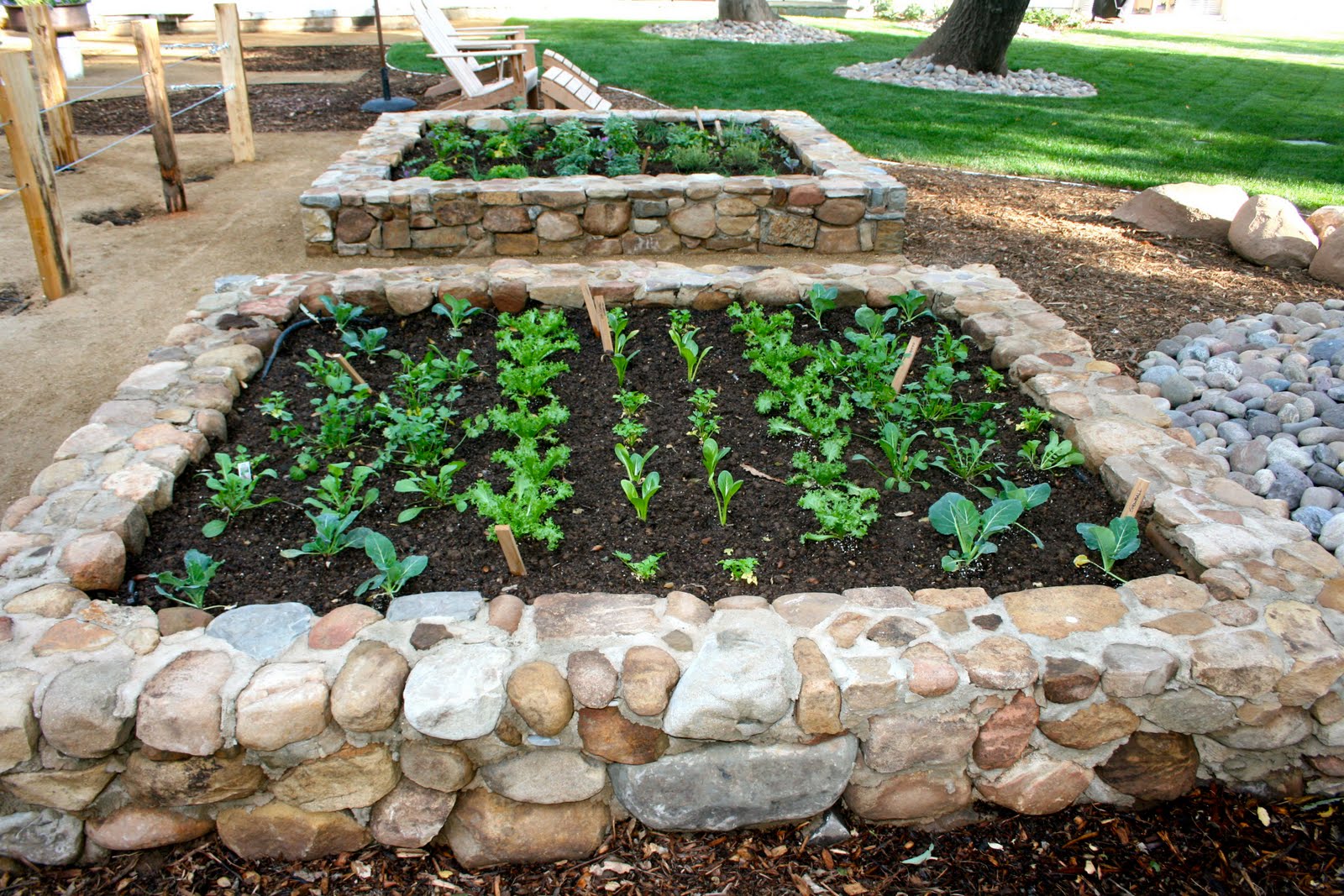 Плоские гладкие замковые камни предлагают удобное место для прополки и сбора урожая на этой специальной каменной грядке. Ожидайте, что вы заплатите более 8000 долларов за кровать размером 12 на 4 на 2 фута аналогичной формы из кварцита.