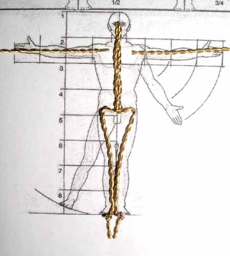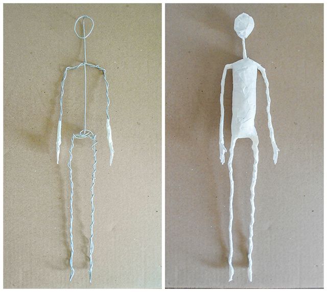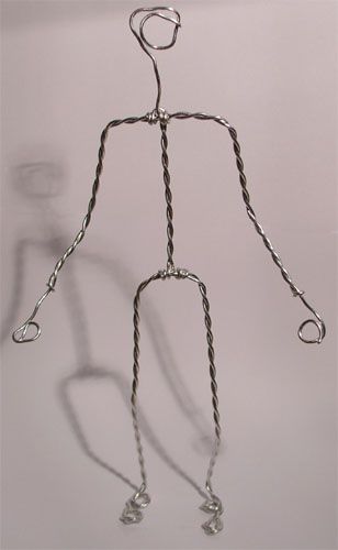 - ΠΠ°ΡΠ½ΠΈΡΠ΅ ΠΈΠ·Π³ΠΎΡΠΎΠ²Π»Π΅Π½ΠΈΠ΅ Ρ Π½ΠΎΠ³. ΠΠΎΠ΄Π±Π΅ΡΠΈΡΠ΅ 2 Π΄ΠΎΠ²ΠΎΠ»ΡΠ½ΠΎ Π΄Π»ΠΈΠ½Π½ΡΡ ΠΎΡΡΠ΅Π·ΠΊΠ° ΠΏΡΠΎΠ²ΠΎΠ»ΠΎΠΊΠΈ, ΠΏΠΎ ΠΎΠ΄Π½ΠΎΠΌΡ Π½Π° ΠΊΠ°ΠΆΠ΄ΡΡ Π½ΠΎΠ³Ρ. ΠΠ° ΡΡΠΎΠΏΠ°Ρ ΠΏΡΠΈ ΠΆΠ΅Π»Π°Π½ΠΈΠΈ ΡΠ΄Π΅Π»Π°ΠΉΡΠ΅ ΠΏΠ΅ΡΠ΅Π»ΡΠΊΡ, ΡΡΠΎΠ±Ρ ΠΏΡΠΈΠΊΡΡΡΠΈΡΡ ΡΠΈΠ³ΡΡΠΊΡ ΠΊ ΠΏΡΠ΅Π΄Π΅ΡΡΠ°Π»Ρ. ΠΠ°ΡΠ΅ΠΌ ΡΠΎΠ΅Π΄ΠΈΠ½ΠΈΡΠ΅ Π½ΠΎΠ³ΠΈ ΠΌΠ΅ΠΆΠ΄Ρ ΡΠΎΠ±ΠΎΠΉ ΠΈ ΡΡΠΎΡΠΌΠΈΡΡΠΉΡΠ΅ ΡΠ°Π·ΠΎΠ²ΡΡ ΡΠ°ΡΡΡ Π½Π°ΡΠ΅Π³ΠΎ ΡΠ΅Π»ΠΎΠ²Π΅ΡΠΊΠ°. ΠΠ»ΠΈΠ½Ρ ΠΏΡΠΎΠ²ΠΎΠ»ΠΎΠΊΠΈ Π΄ΠΎΠ»ΠΆΠ½ΠΎ Ρ Π²Π°ΡΠΈΡΡ Π½Π° ΠΏΠΎΠ·Π²ΠΎΠ½ΠΎΡΠ½ΠΈΠΊ, ΡΠ΅Ρ ΠΈ Π³ΠΎΠ»ΠΎΠ²Ρ.