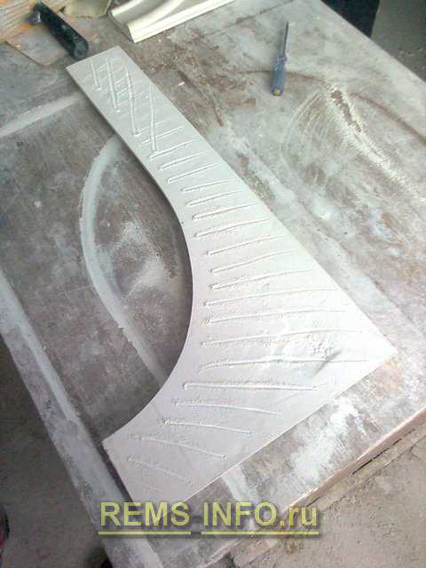 Это важный этап. Если сделать что-то неаккуратно, вы испортите всё, ранее проделанную, работу. Используйте мелкую наждачную бумагу, чтобы убрать все шероховатости и незначительные неровности на поверхности изготовленной лепнины. На тыльной стороне, которая в дальнейшем будет крепиться к основанию, нацарапайте сетку.