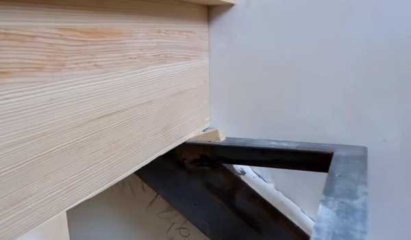Обязательно по нижнему краю боковой облицовочной доски делаем припуск на 1,5 см. Этот припуск будет закрывать гипсокартон, которым обшивается металлический каркас лестницы снизу.