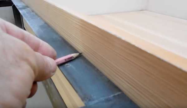 В верхней части подступенника, с обратной стороны мы делаем разметку таким образом, чтобы после обрезки он без зазора поместился под ступенью.