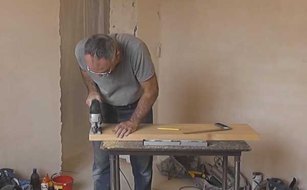 Поскольку обрезанная часть доски будет потом закрываться, то выполнить эту операцию можно лобзиком или обычной ножовкой.