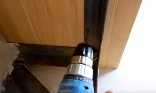 Теперь берем дрель, вставляем в нее сверло диаметром 2,8-3 мм и для того, чтобы впоследствии вкрутить саморезы, предварительно насверливаем отверстия.