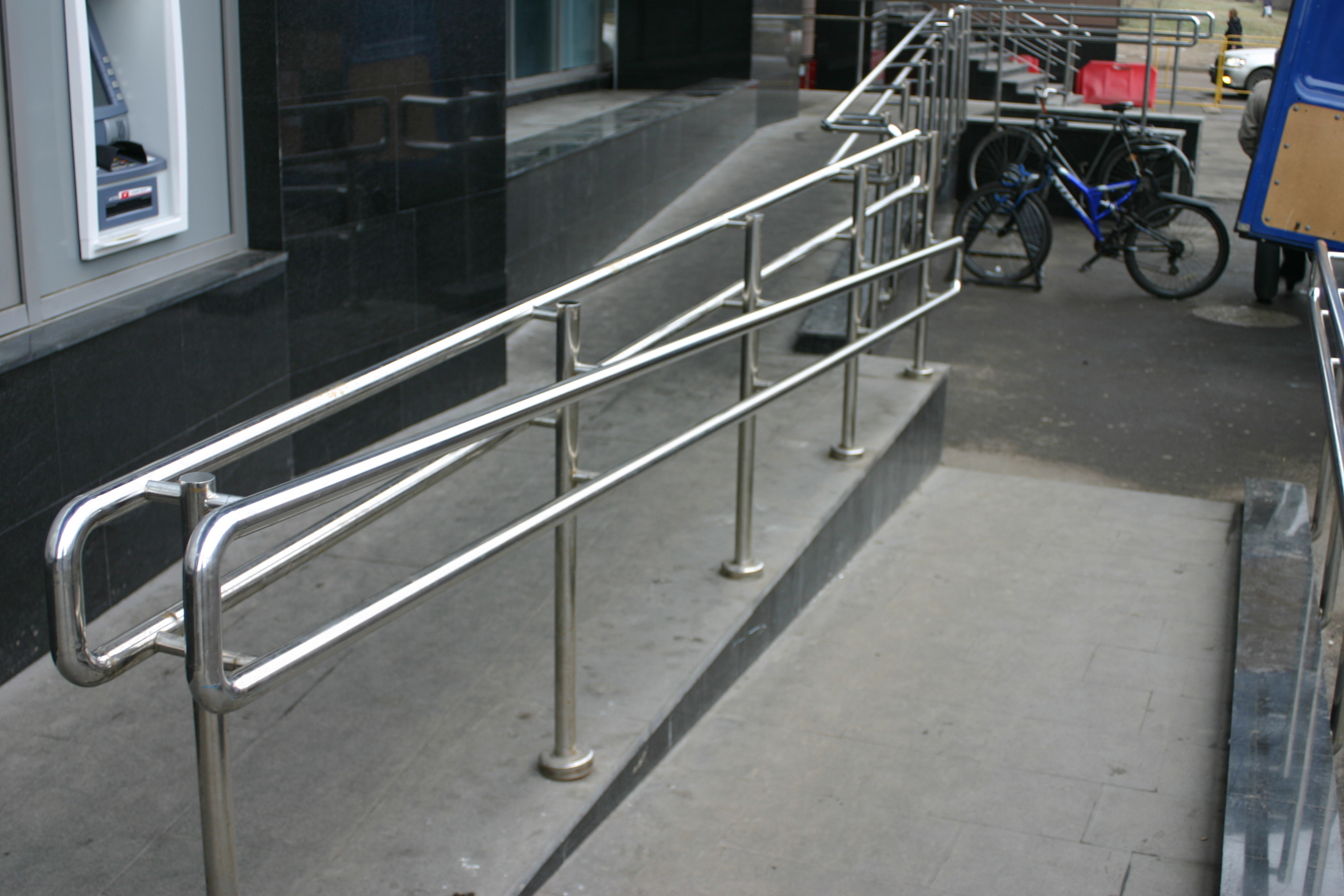 - Важно, чтобы пандусы располагались на тех участках пешеходных дорожек или пола в различных учреждениях, где имеется перепад высоты от 4 см. Конечно, наилучшим образом будет, если пандус будет установлен в местах с перепадами начиная от 1-1,5 см, как это принято в мировой практике.