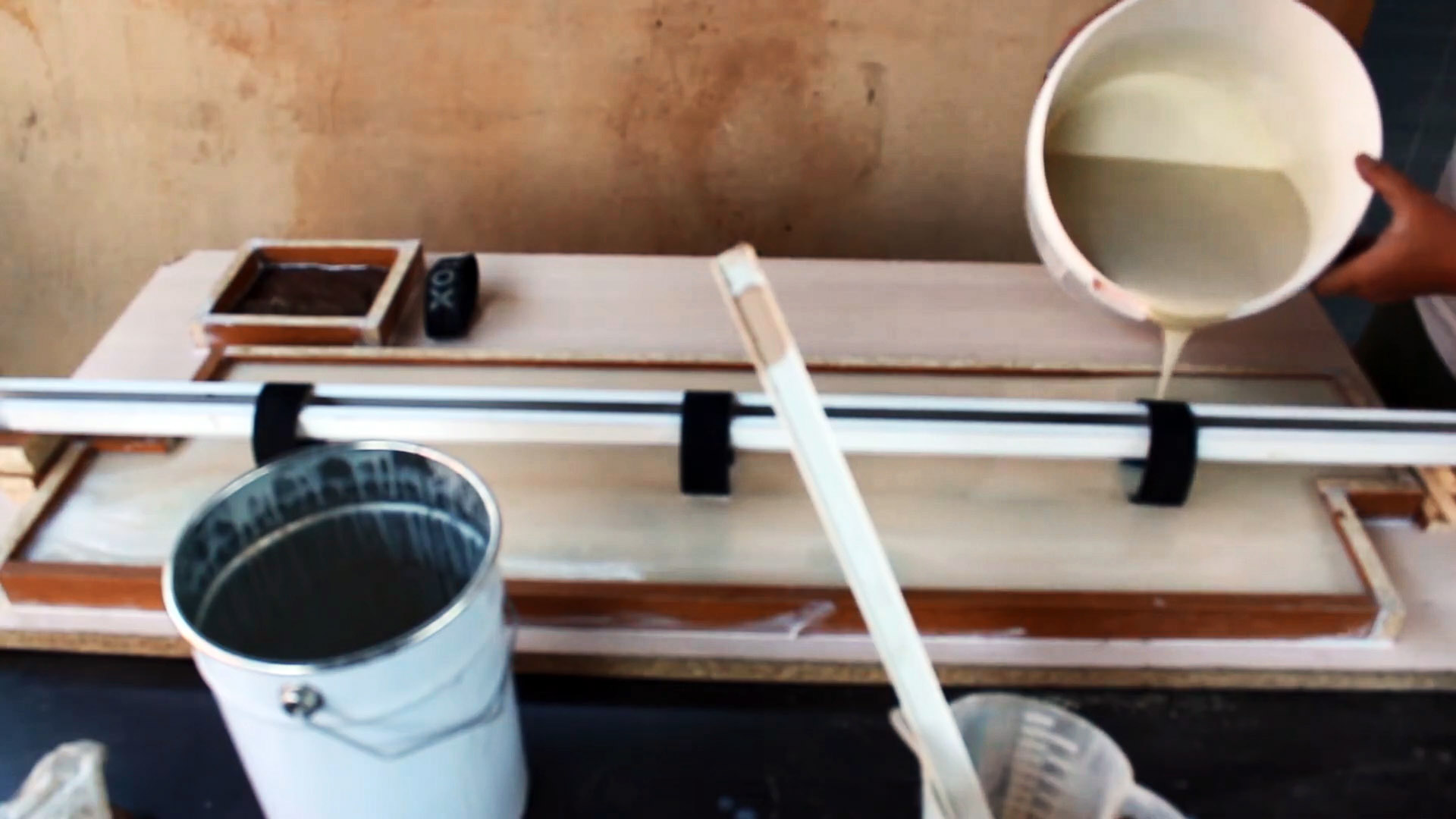Форма была отлита из жестяной потолочной панели. Тщательно смешайте двухкомпонентный уретан с помощью низкооборотной дрели и лопасти.