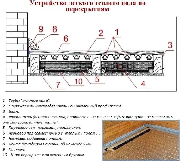 Как и при электрическом теплоносителе, здесь необходимо создать «тепловой пирог», состоящий из следующих слоев: