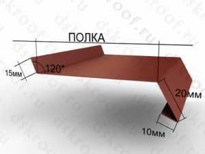 Отлив представляет собой небольшой козырек, ширина которого варьируется от 50 и до 400 мм. Он состоит из крепежного отгиба для фиксации элемента к стене, монтируемой под углом полки, направляющего стекающую воду вниз фронтального прогиба.