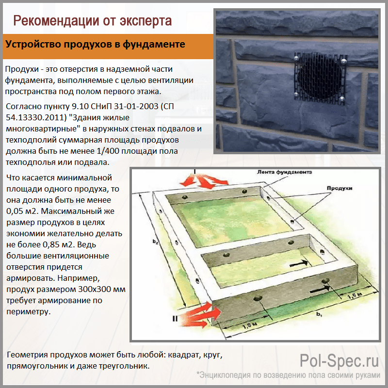 Как сделать продухи в фундаменте