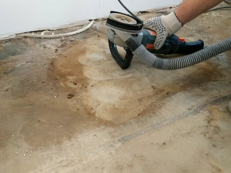 - Сам пол нужно попробовать на прочность. Для этого придется сделать пробный заход шлифовальной машинкой. Если пол слишком сильно крошится нужно взять насадку с меньшей зернистостью или перезалить пол.