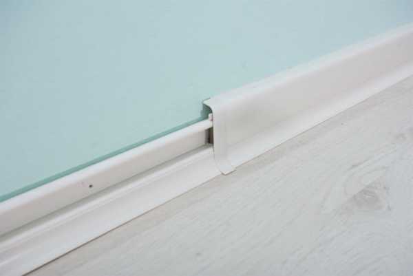 - Замковое крепление. Оно выполняет две функции: применяется как крепеж и позволяет проложить кабель в пространство между стеной и плинтусом.