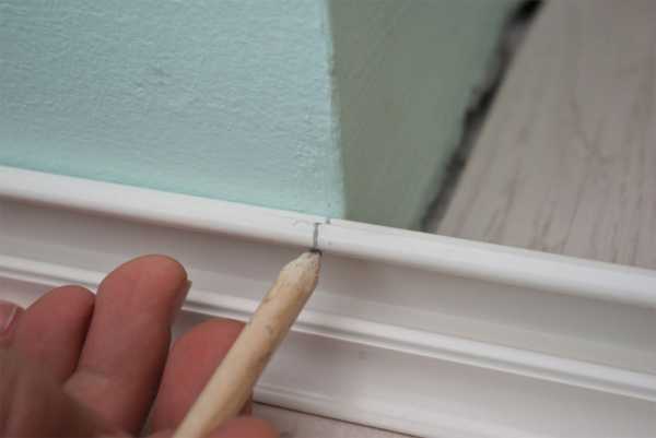 - Для того чтобы иметь возможность стыковать плинтуса в углах под 90°С, необходимо предварительно выровнять сами углы. Для этого лучше всего использовать гипсовую смесь или шпатлевку. Этим надо заниматься на начальном этапе ремонта помещения, но если такую работу приходится выполнять в процессе монтажа плинтусов, допускается заполнение образовавшихся неровностей после монтажа, при помощи смеси для шпатлевания стен.