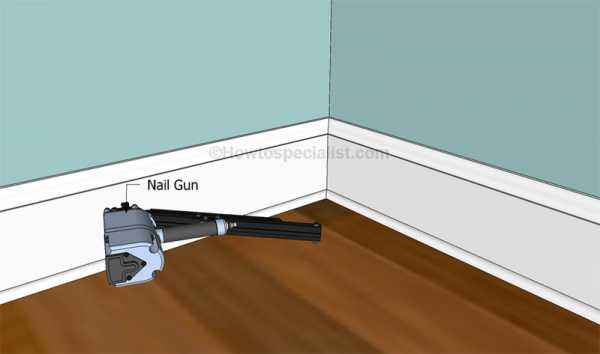 В отличие от плинтуса из пластика, деревянные можно крепить и на финишные гвозди. Эта технология установки особо не отличается от варианта с саморезами, единственное, вместо пластиковых дюбелей используют нагели – палочки цилиндрической формы из той же древесины.