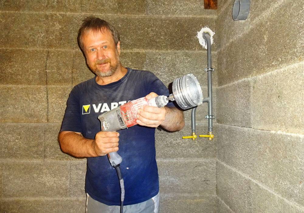 В основном длинные сверла по камню, особенно по бетону, используются для сверления сквозных отверстий для протягивания кабеля или дренажных труб для стиральных машин.
