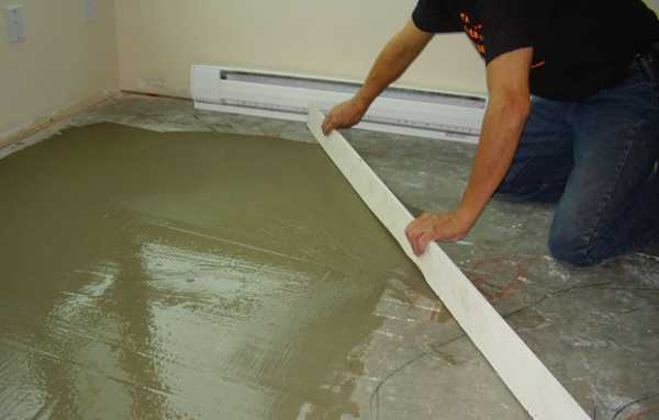 После заливки стяжки, на плоскости могут появиться маленькие выпуклости. Необходимость их корректирования находится в зависимости от черт применяемого линолеума. Толстая податливая основа линолеума, либо упругая подложка вполне могут восполнить маленькие выпуклости пола.