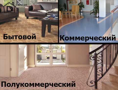 Сообразно назначению искусственный линолеум разделяется на: торговый, полукоммерческий, спец и домашней. Любой из данных подвидов покрытия различается шириной и износостойкостью.