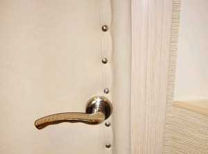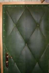 Обивка входных дверей квартиры или дачи является эффективным способом теплоизоляции, а также выполняет звукоизоляционные и декоративные функции. Для обивки применяют кожзаменитель, дерматин, поролон, вату, которые прикрепляют обыкновенными или мебельными гвоздями. Перед началом работ дверь снимают с петель, укладывают на две подставки (можно применять табуретки), снимают все выступающие элементы (ручка, глазок, номер и т. п.).
