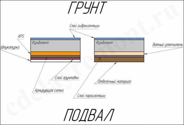 Схема теплоизоляции стен, подвалов и фундаментов