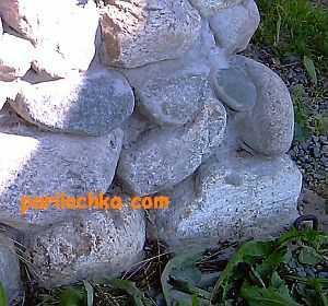 • Камень предварительно замочить в воде, а затем высушить, отобрав камни наиболее правильной формы. Это нужно для создания первых рядов;