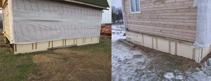 - Монтаж утепляющих и гидроизолирующих материалов с внутренней стороны цоколя.