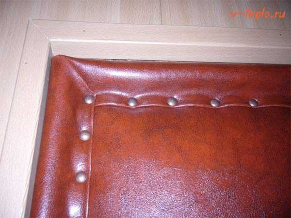 Эффективным методом утепления, а также звукоизоляции является обивка входной двери. Для данного метода используется искусственная кожа, поролон, вата. Для крепления применяются мебельные или обычные гвозди.