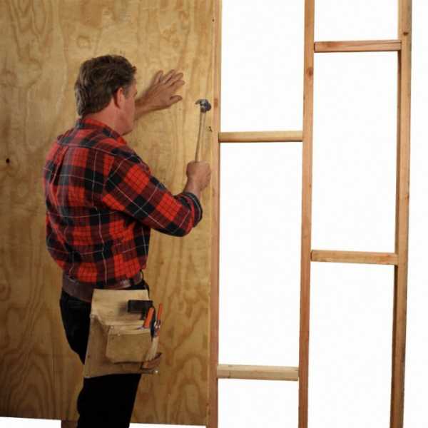 - Теперь снимаете входную деревянную дверь с петель, кладете ее на ровную поверхность – это может быть стол, два стула или козлы.