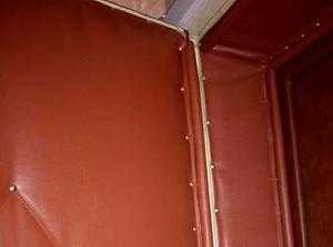 Утеплитель покрывается обивочным материалом, причем размеры последнего должны несколько превышать размеры самого полотна.