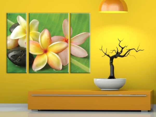- Размер помещения немаловажен. В просторной комнате будет выгодно смотреться картина, состоящая из модулей большого формата. Но в маленькой комнате такой вариант будет неуместным – сюда лучше подобрать небольшую композицию, которая не создаст эффекта перенасыщенности.