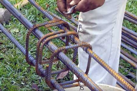 Для бетонных, каменных и блочных стен на столбы устанавливают железобетонную балку сборную или монолитную. Сборные готовые изделия обходятся дороже, но сборка конструкции осуществляется гораздо быстрее. С монолитными изделиями работы больше, но их стоимость ниже. При изготовлении каркаса армирования прутки выпускают за предел бетонного объёма на 50 и более сантиметров. Эти запасы служат связующим сопрягаемых конструкций.