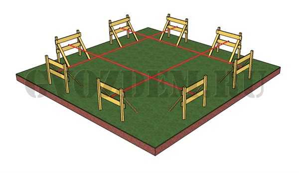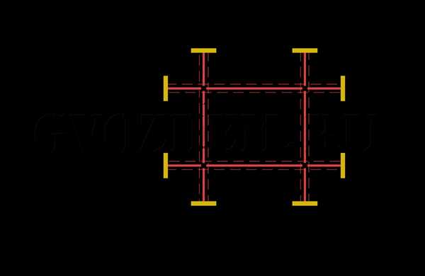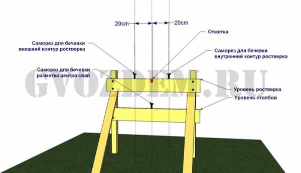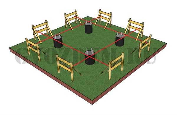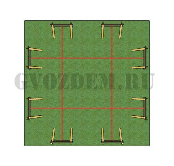 16. Готовая разметка прямоугольного фундамента с применением теоремы Пифагора. © www.gvozdem.ru