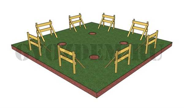 Расстояние между столбиками по периметру и по диагонали должно быть одинаковым. Здесь нужно проявить педантичность, от этого зависит красота и пропорциональность строения.