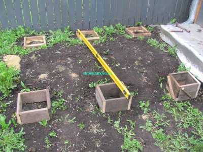 К примеру, для легкого строения небольших размеров выровнять фундамент можно при помощи установки будущей рамы террасы с подкладкой разнообразных брусочков, это выполняется с целью доведения рамы до необходимого горизонтального положения. Однако это не совсем правильно, так как в данном случае будет отсутствовать опора по плоскости.