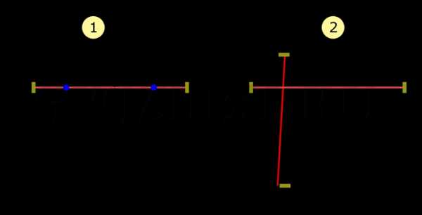 2. Натягиваем вторую бечевку максимально перпендикулярно первой. Идеально перпендикулярно на практике натянуть сложно, поэтому на рисунке мы также отобразили ее не много отклоненной.