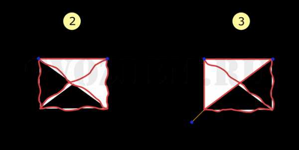 Самой простой способ разметки. Строим прямоугольник по размерам фундамента применяя теорему Пифагора для нахождения прямого угла. © www.gvozdem.ru