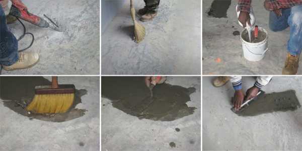 Прометают щеткой отбитые края и смачивают их жидким песчано-цементным раствором. Укладывают полноценный слой бетона, выравнивают его по уровню соседних участков. Если новый слой доходит до стенки, то устраивают компенсационный шов из двух слоев листовой или рулонной гидроизоляции. Как приготовить бетонный раствор нужного состава читайте здесь.