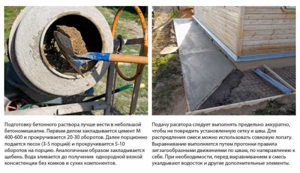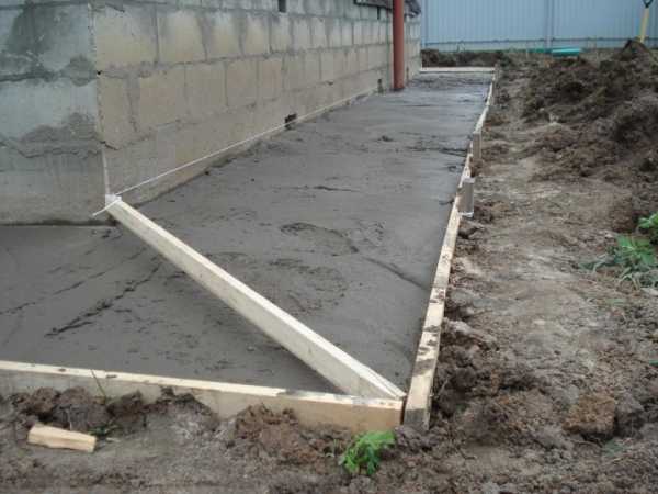 К разрушению отмостки может привести заливка уже схватившимся раствором.