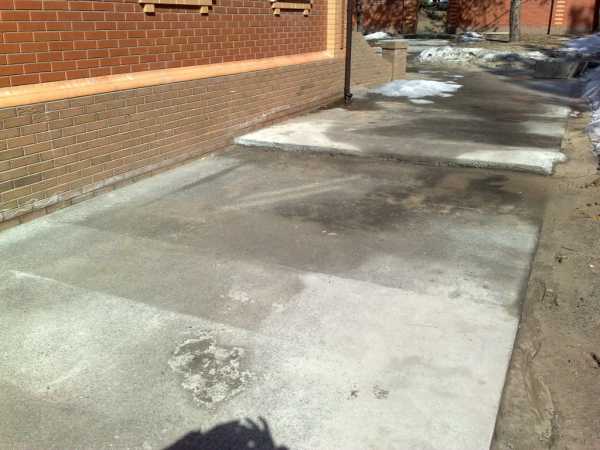 - После бетонирования летом поверхность отмостки не смачивалась и раствор высох, не успев набрать прочность.
