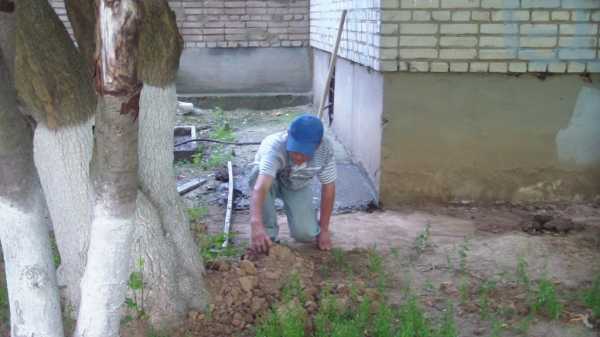 Начинают ремонт с крупных дефектов типа провалов отмостки. Их края разбивают до прочного основания, обломки, добавив песка, ссыпают в провал, после чего втрамбовывают в подсыпку. Подсыпку добавляют до начального уровня.