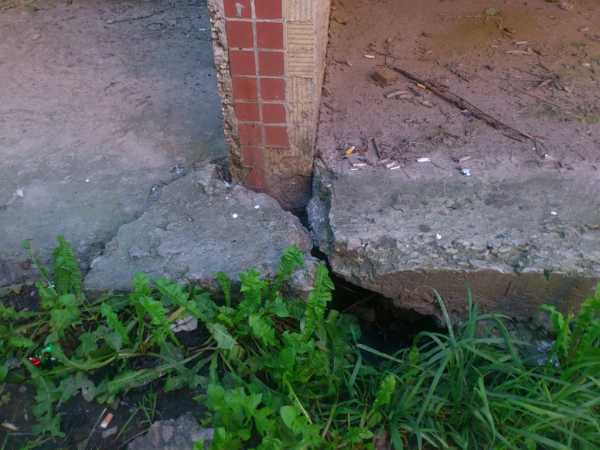 Дальше процесс только усиливается – в новые трещины попадает ещё большее количество воды, вследствие чего происходит дальнейшее разрушение отмостки вокруг дома, с гораздо ускорившимися темпами.