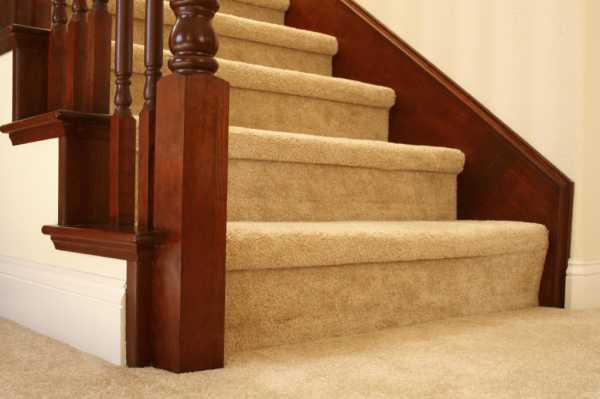 Установка специального лестничного ламинатаЕсли в доме проживают дети или пожилые люди, то можно выбрать ковролин, доступный в разных расцветках.