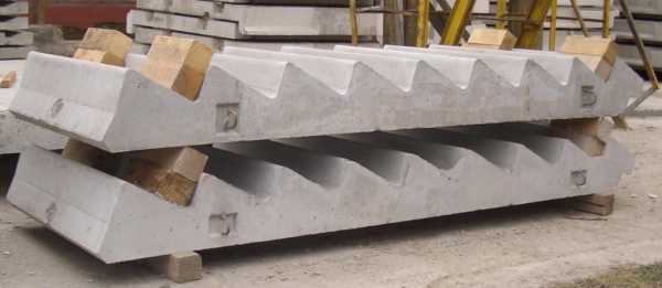 Серийные марши заводского изготовленияНаборные типы состоят из бетонной балки (косоура) и отдельных ступенек, которые бывают прямоугольными, треугольными, уголковыми и с пазом. Железобетонные виды выполняются в заводских условиях по заданным размерам и имеют стандартную форму.