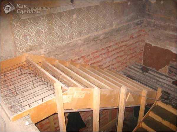 Первый тип выполняется на месте по технологии заливки бетонного раствора в опалубку, может устанавливаться в любом месте (на крыльце, улице или подвальном помещении).