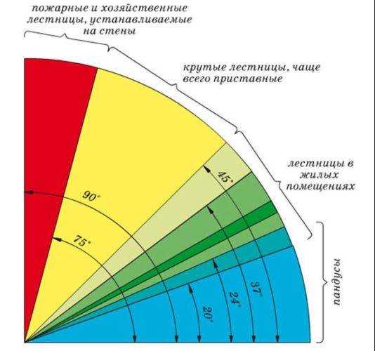 Оптимальный диапазон уклона 24 – 37 градусовВ соответствии с руководством, выбирать угол подъема нужно на основании подходящих размеров марша, сложности строения и его комфортности.