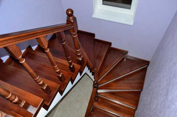 Более сложный вариант – лестница двухмаршевая с междуэтажной площадкой или забежными ступенями. Изготовить забежные ступени сложнее, чем площадку, но они позволяют сделать более коротким лестничный марш и сэкономить место.