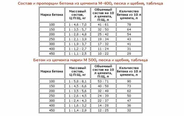 Таблица состава и пропорций бетонной смесиЗаливаем бетоном фундамент постепенно, слоем в 10-15 см. Каждый слой следует утрамбовать лопатой или тяпкой, и постукивать молотком по опалубке. Это нужно, чтобы в бетоне не оставалось воздуха, который может в дальнейшем стать причиной расслоения бетона. Во время заливания фундамента так же стоит время от времени с залитого раствора убирать белую пенку, которая тоже, как и воздух, в будущем расслоит бетон и сделает его более слабым.
